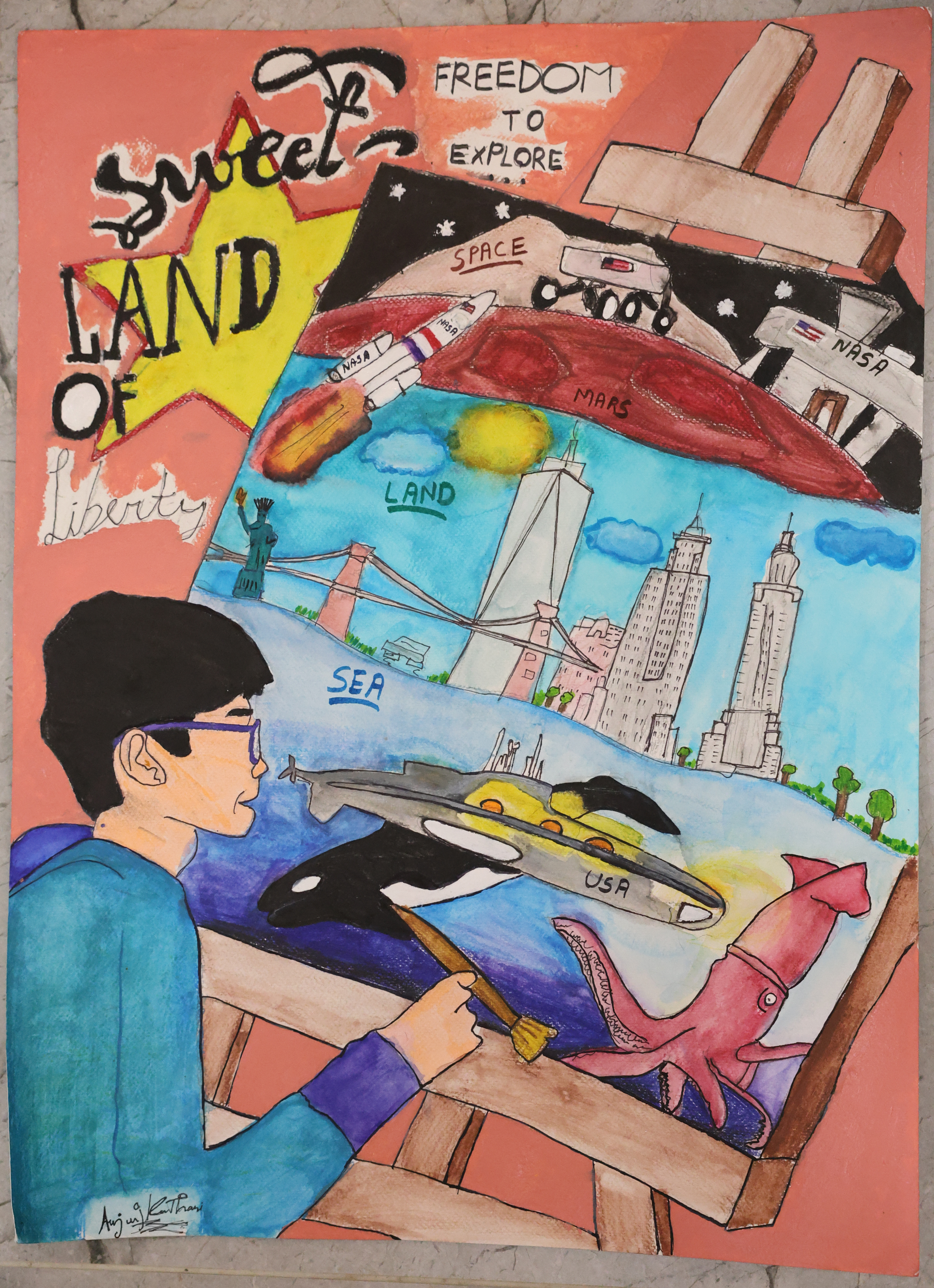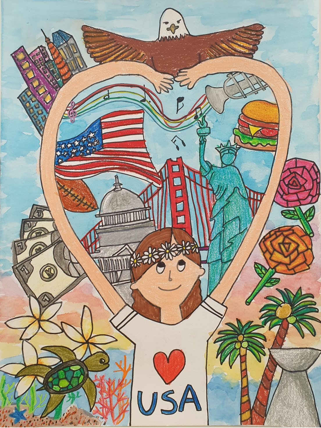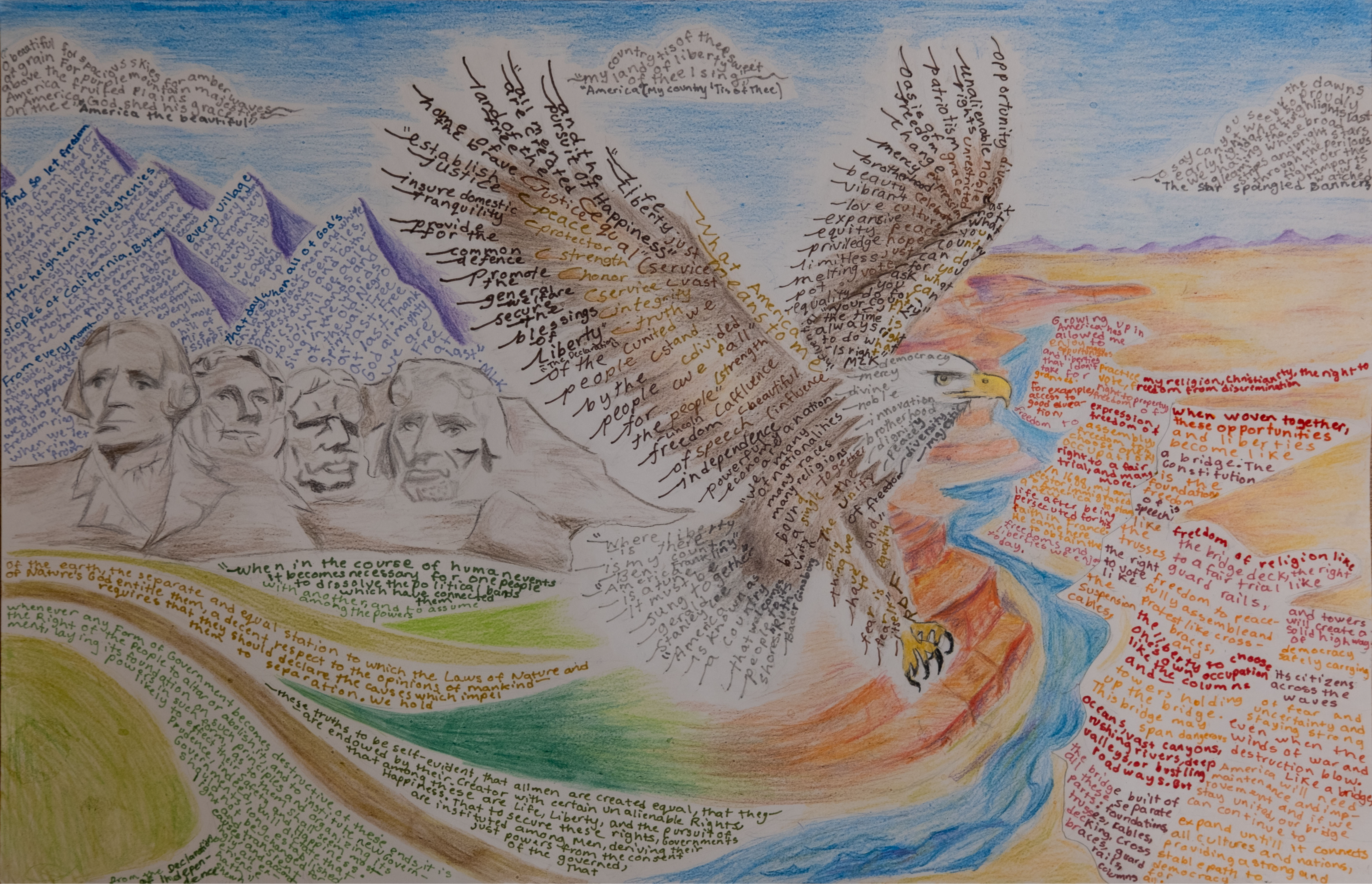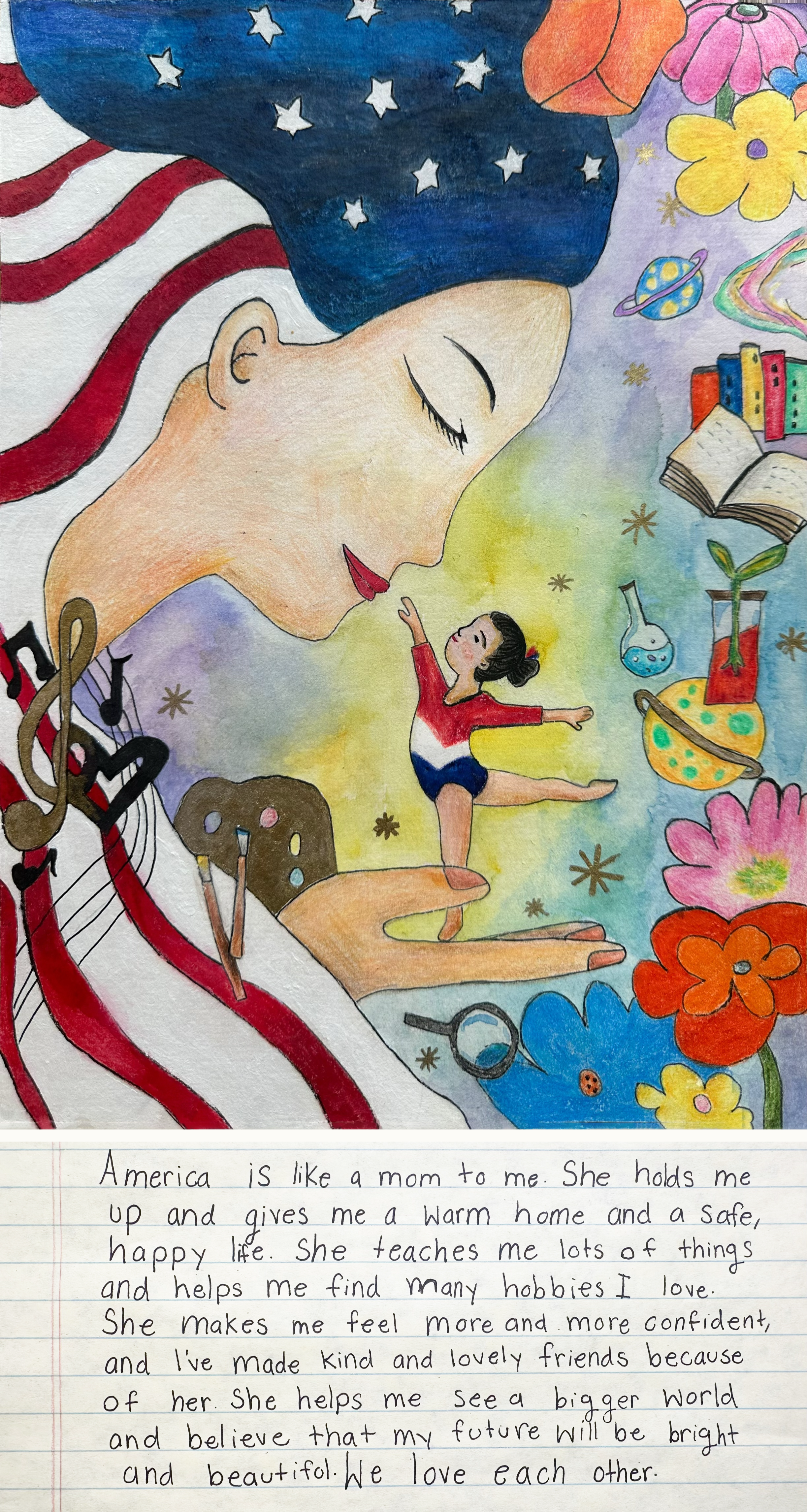 As part of the 2025 America’s Field Trip contest, thousands of students in grades 3–12 submitted powerful reflections on the question, “What does America mean to you?” From every corner of the country—including all 50 states, 5 U.S. territories, and the District of Columbia—students responded with original writing and artwork that express the thought, experience, and imagination that make up the American story.
